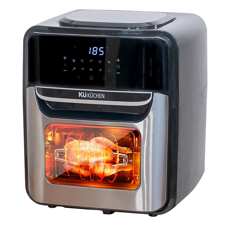 Nồi chiên không dầu KUCHEN KU PCB 1119 sở hữu thiết kế nhỏ gọn nhưng vẫn sang trọng, vỏ inox hiện đại, phù hợp với bất kỳ không gian căn bếp nào. Cửa sổ sản phẩm làm bằng kính cường lực, bền và an toàn khi sử dụng, có thể nhìn xuyên thấu vào trong thực phẩm. Bên cạnh đó, Bảng điều khiển cảm ứng hiện đại, dễ dàng sử dụng, bạn có thể tùy chỉnh thời gian và nhiệt độ cho phù hợp với từng món ăn khác nhau, 10 chương trình nấu định sẵn và có thể tùy chỉnh thời gian nhiệt độ không giới hạn.