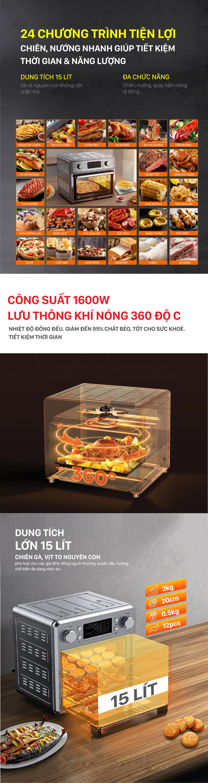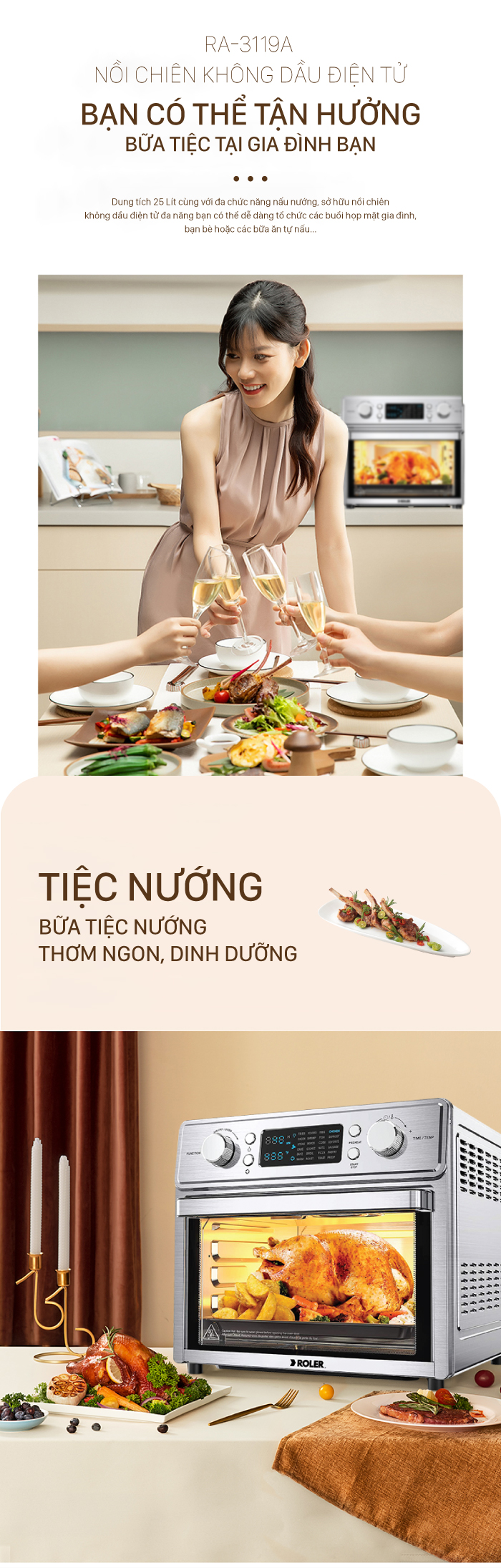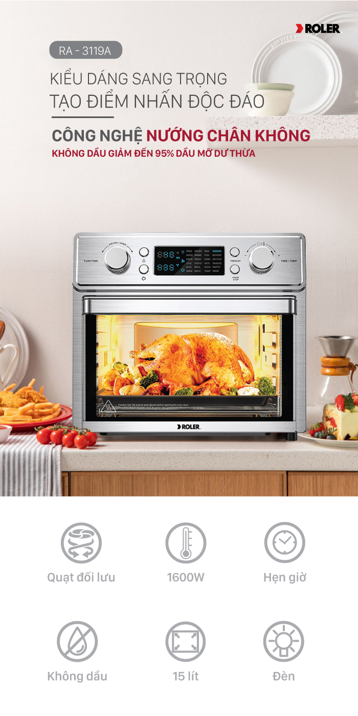 GIỚI THIỆU: NỒI CHIÊN KHÔNG DẦU ĐIỆN TỬ ĐA CHỨC NĂNG 15L ROLER RA-3119A