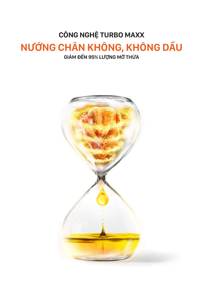 Nồi chiên không dầu đa chức năng ROLER RA-3119A sử dụng công nghệ TURBO MAXX, nướng CHÂN KHÔNG, KHÔNG DẦU giảm đến 95% dầu mỡ dư thừa.