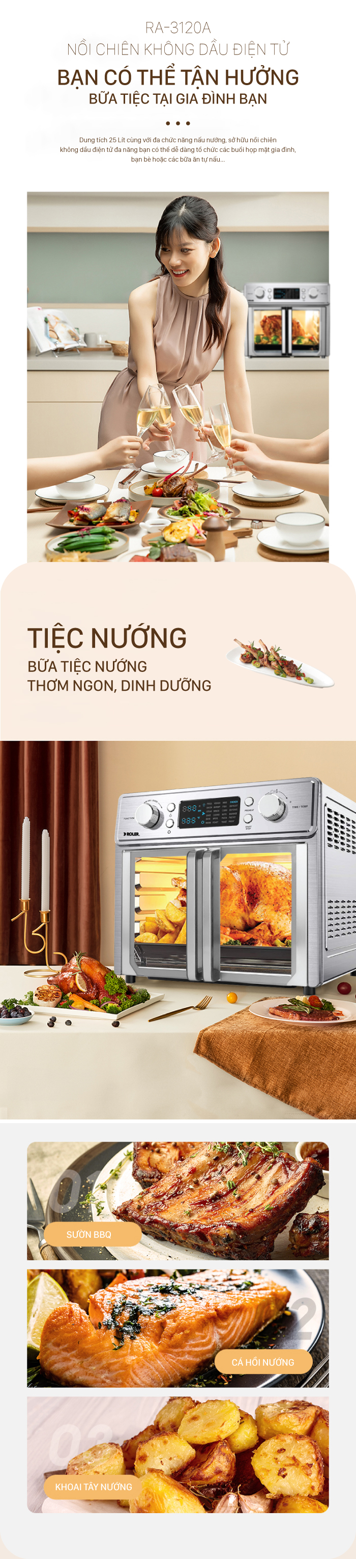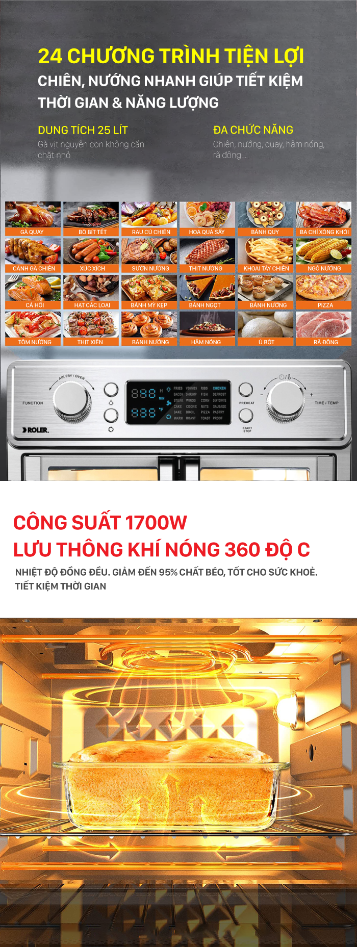 GIỚI THIỆU: NỒI CHIÊN KHÔNG DẦU ĐIỆN TỬ ĐA CHỨC NĂNG 25L ROLER RA-3120A
