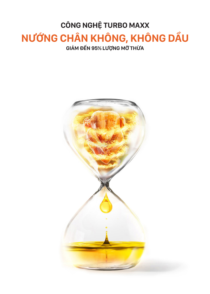 Nồi chiên không dầu đa chức năng ROLER RA-3119A sử dụng công nghệ TURBO MAXX, nướng CHÂN KHÔNG, KHÔNG DẦU giảm đến 95% dầu mỡ dư thừa.