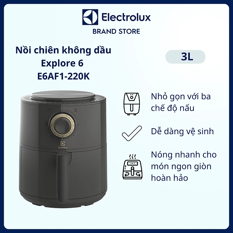 Nồi chiên không dầu Electrolux 3L Explore 6 E6AF1-220K, Món ngon không cần dầu, dễ dàng vệ sinh [Hàng chính hãng]
