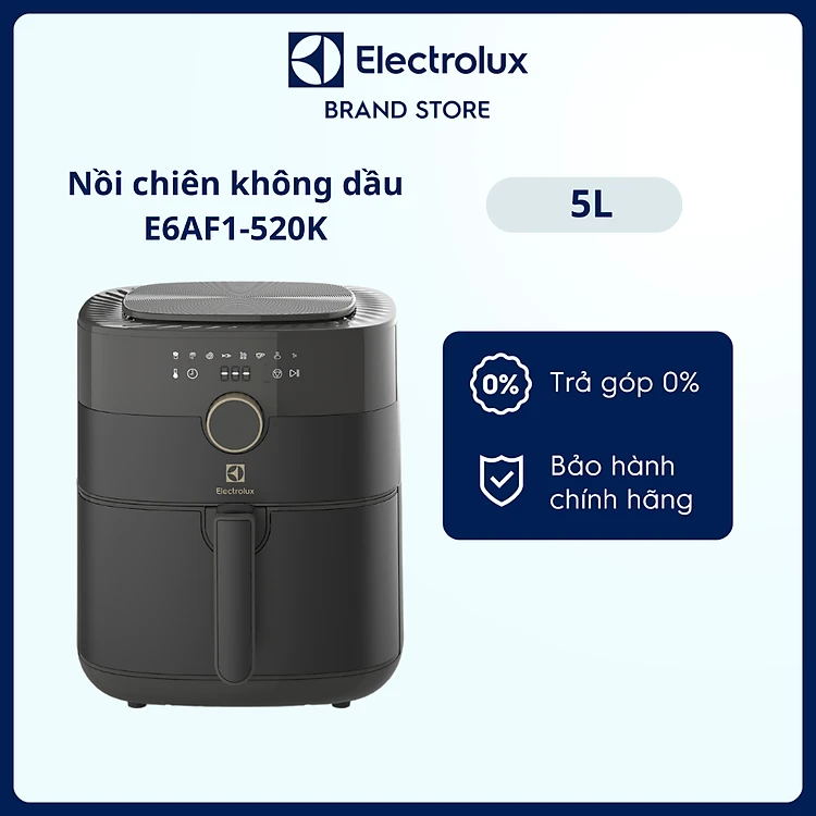 Nồi chiên không dầu Electrolux E6AF1-520K - Dung tích giỏ chiên 5 lít - 8 chương trình nấu [Hàng Chính Hãng]