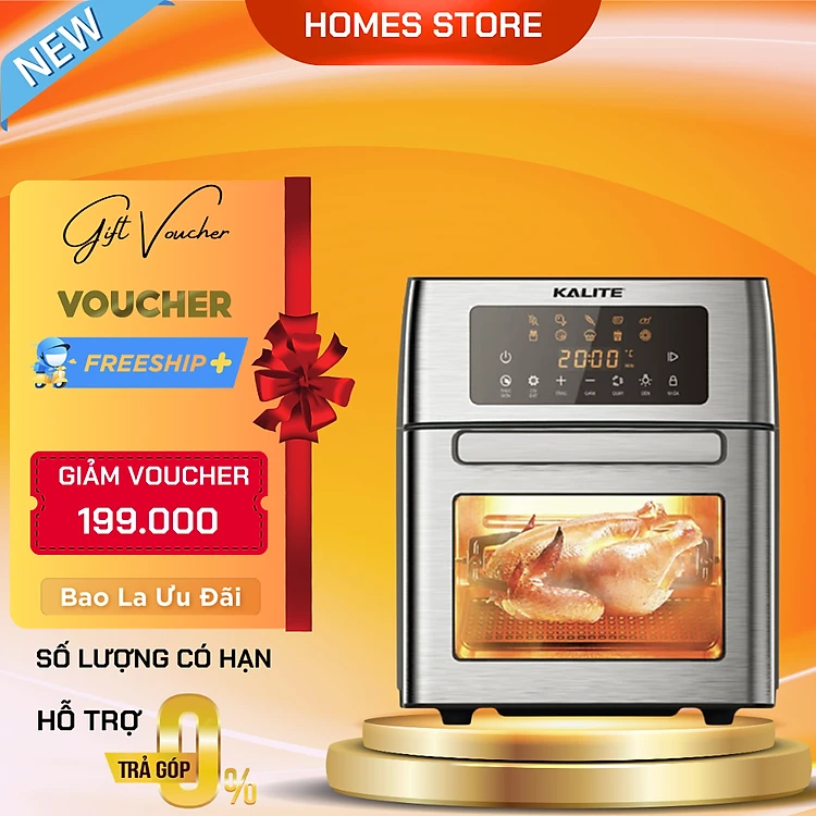 Nồi Chiên Không Dầu Kalite KL-1500 Nướng Gà Nguyên Con Gồm 10 Chương Trình Cài Đặt Dung Tích 15 Lít Công Suất 1700 W - Hàng Chính Hãng