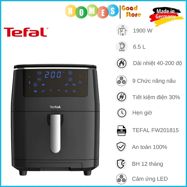 Nồi Chiên Không Dầu, Nướng, Hấp TEFAL FW201815, Nhập Khẩu Đức, 8 Chức Năng Chiên, Dung Tích 6.5L, Công Suất 1900W - Hàng Nhập Khẩu