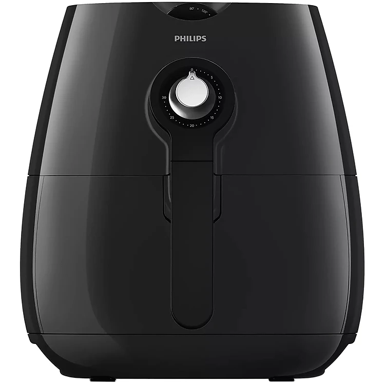 Nồi chiên không dầu Philips thiết kế 2 núm xoay, 1 núm nằm ở mặt trước là núm điều chỉnh chức năng hẹn giờ, thời gian chọn tối đa 30 phút, 1 núm nằm ở trên đầu sản phẩm là núm chỉnh nhiệt độ từ 80 - 200 độ C, tùy theo nhu cầu món ăn mà bạn hẹn giờ nấu và mức nhiệt độ phù hợp để món ăn chín ngon, không bị cháy khét.