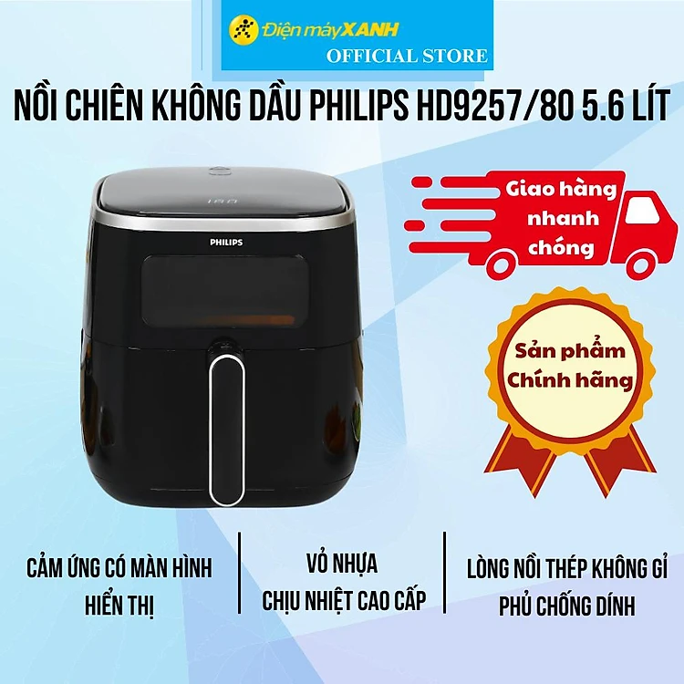 Nồi chiên không dầu Philips HD9257/80 5.6 lít - Hàng Chính Hãng
