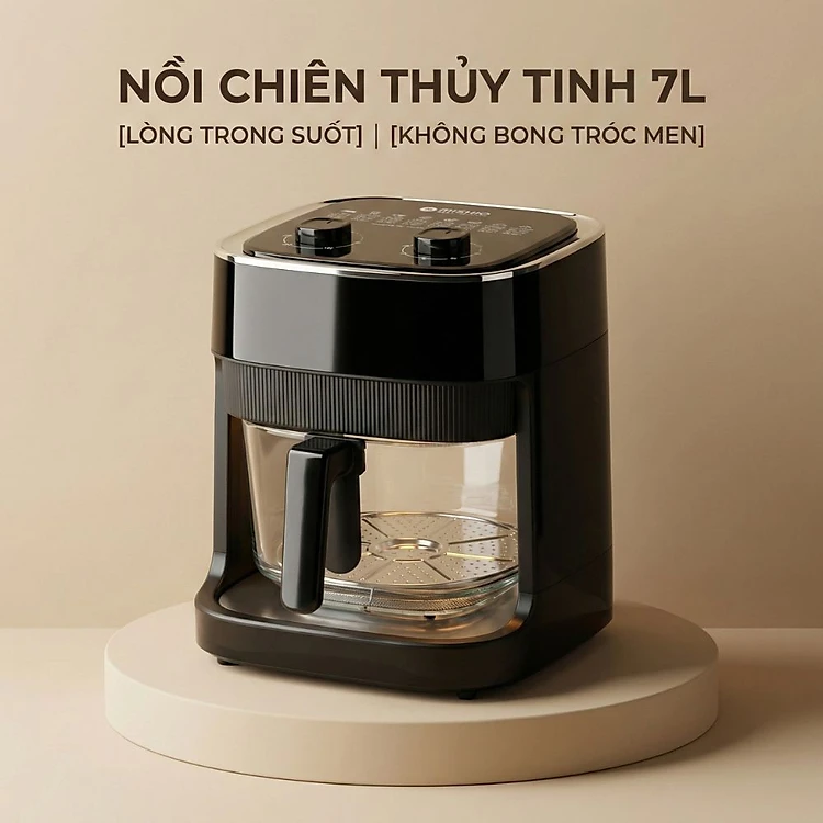 Nồi chiên không dầu thủy tinh Mishio MK373 - Dung tích 7 lít lòng nồi không bong tróc gỉ sét - Hàng chính hãng