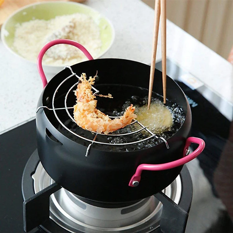 Nồi với lớp phủ chống dính thức ăn, dễ vệ sinh. Tiện dùng chiên Tempura, các món chiên bột… Kèm lưới để thức ăn làm ráo dầu tiện dụng.
