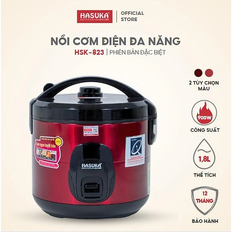 Nồi cơm điện HASUKA HSK 823 dung tích 1.8L, công suất 900W, lòng niêu dầy phủ chống dính ceramic, chống xước siêu bền - Hàng chính hãng