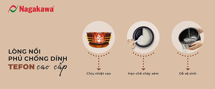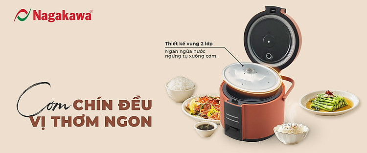 Nồi cơm điện Nagakawa NAG0143 - Dung tích 1.8L - Bảo hành 12 tháng - Hàng chính hãng