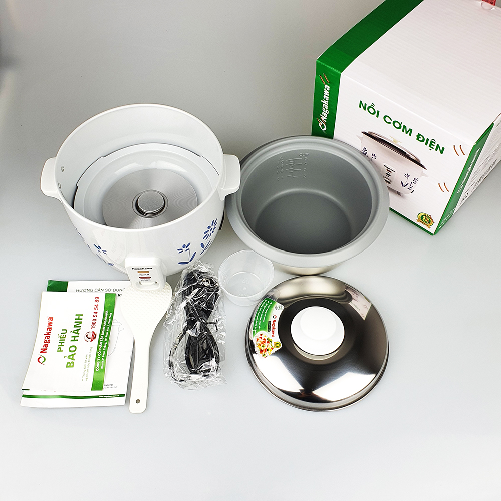 Nồi Cơm Điện 1.8L Nagakawa Màu Trắng Công Suất 700W Nắp Rời Đa Năng Cho Gia Đình 4-7 Người-Hàng Chính Hãng