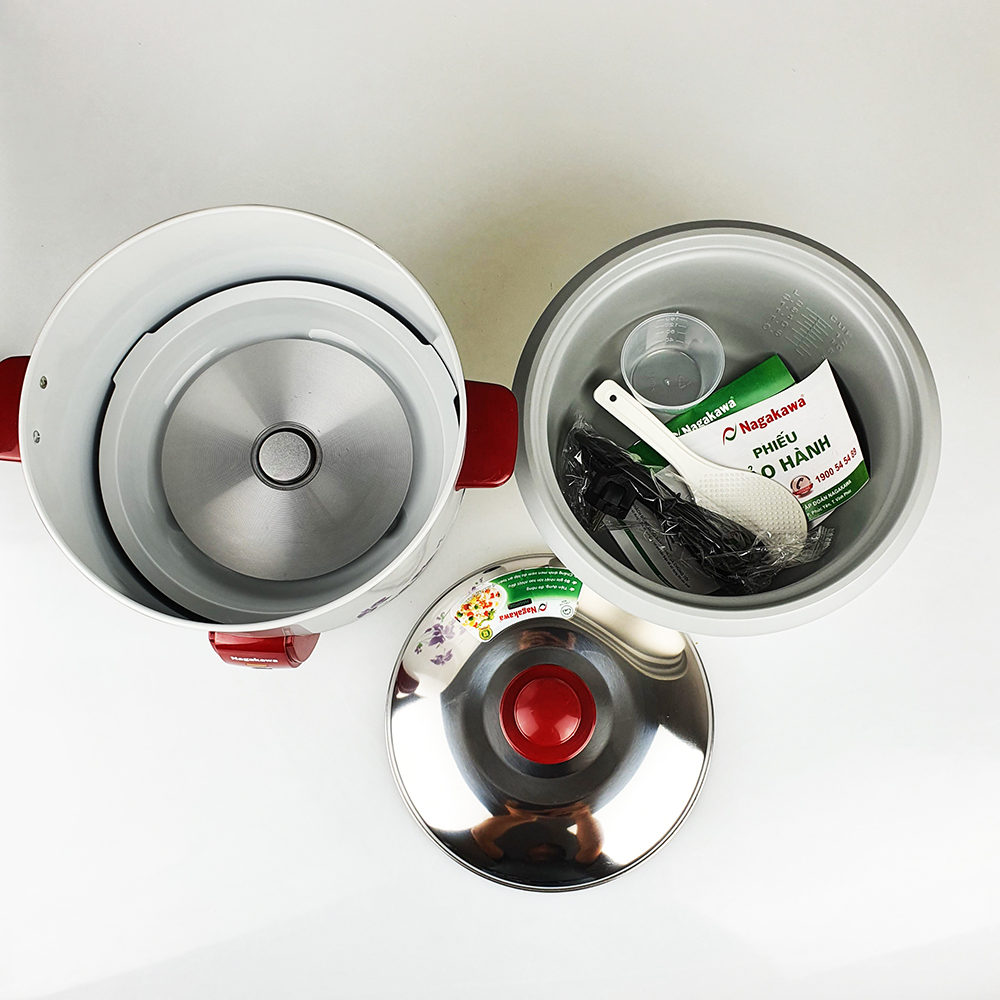 Nồi Cơm Điện 2.2L Nagakawa Công Suất 900W Nắp Rời Đa Năng Cho Gia Đình 6-8 Người
