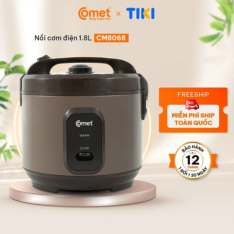 Nồi cơm điện nắp gài Comet CM8068 dung tích 1.8L – Công suất 700W, lòng nồi niêu chống dính, đa chức năng nấu – Hàng chính hãng, bảo hành 1 năm
