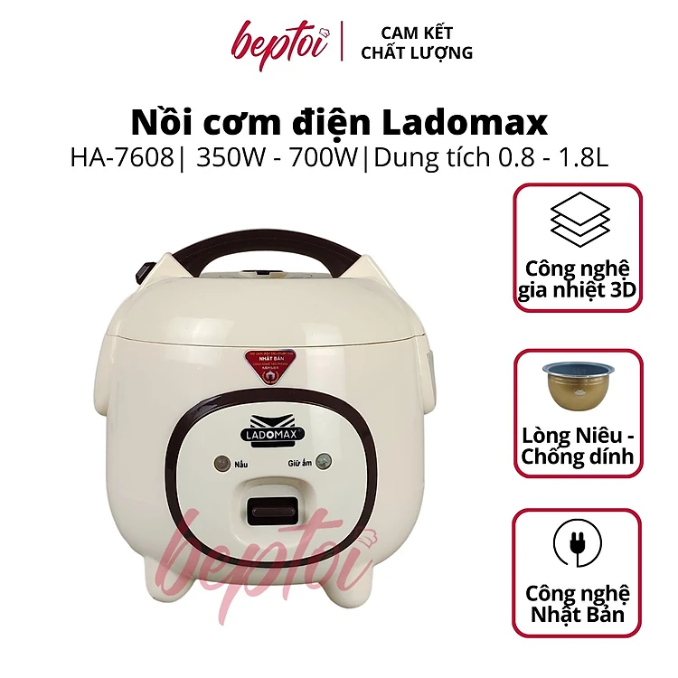 Nồi cơm điện nắp gài Ladomax, nồi cơm điện mini công suất 350W - 700W, dung tích 0.8L - 1.2L - 1.8L HA-76 Series Hàng chính hãng