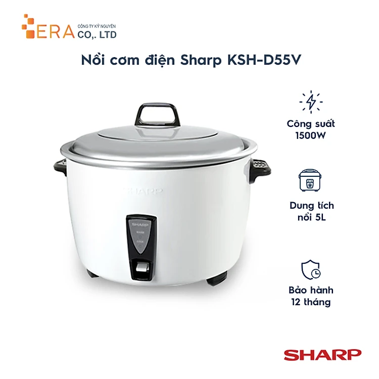 Nồi Cơm Điện Nắp Rời Sharp KSH-D55V (5L) - Trắng - Hàng chính hãng