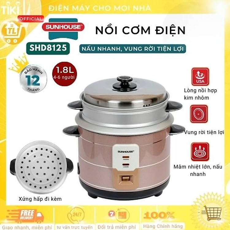 Nồi Cơm Điện Nắp Rời Sunhouse SHD8125 (1.8L) - Hàng chính hãng
