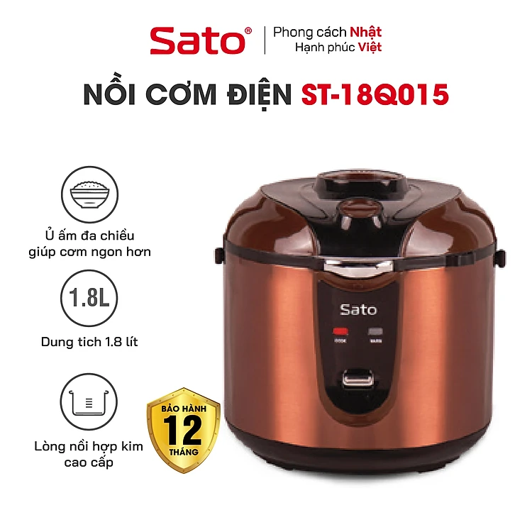 Nồi Cơm Điện SATO 18Q015 1.8L - Thiết kế quai xách chắc chắn, chống tràn tốt, nút điều khiển đơn giản, tiện dụng - Miễn phí vận chuyển toàn quốc - Hàng chính hãng