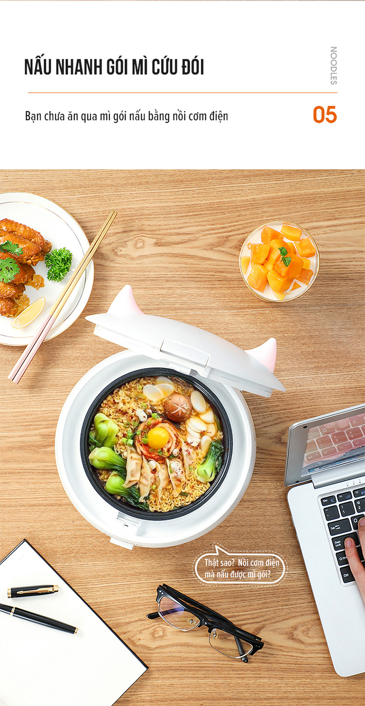 Sản phẩm có 2 chức năng cơ bản đó là nấu và giữ ấm. Khi cơm cạn và chín, nồi sẽ tự động chuyển sang chế độ giữ ấm, giảm mức công suất hoạt động để đảm bảo cơm không bị khô. Đặc biệt, bạn có thể dùng nồi cơm để chế biến đa dạng các món ăn ngon theo sở thích như nấu lẩu, luộc mì, nấu canh.