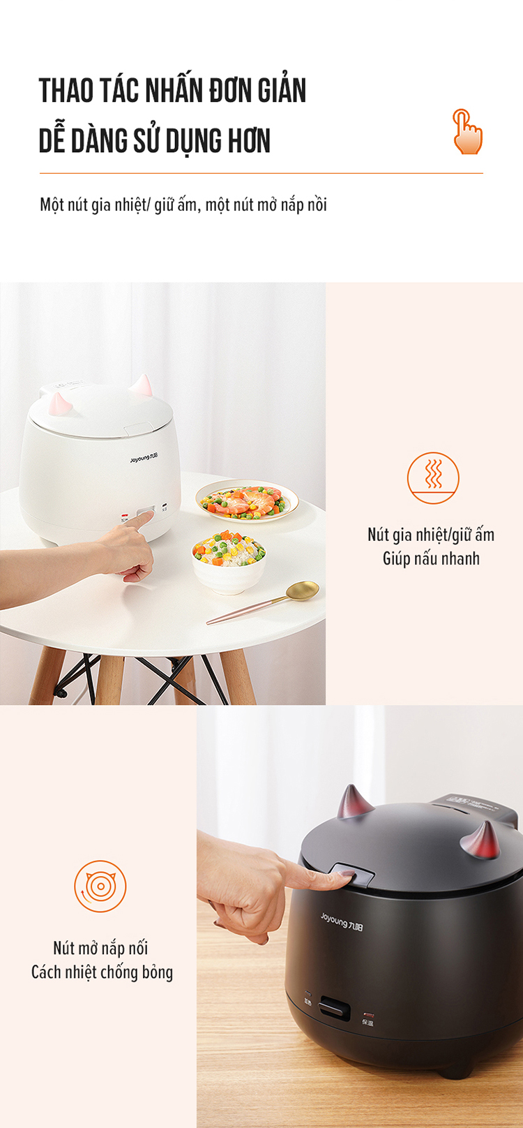 Nồi Cơm Điện Tiểu Quỷ Joyoung F-15Z609 sở hữu thiết kế hình tiểu quỷ độc đáo kết hợp màu sắc nổi bật, trẻ trung tạo điểm nhấn nổi bật cho không gian bếp nhà bạn. Sản phẩm được trang bị nắp gài tự động, quai cầm tích hợp ngay trên nắp, giúp bạn thuận tiện sử dụng.