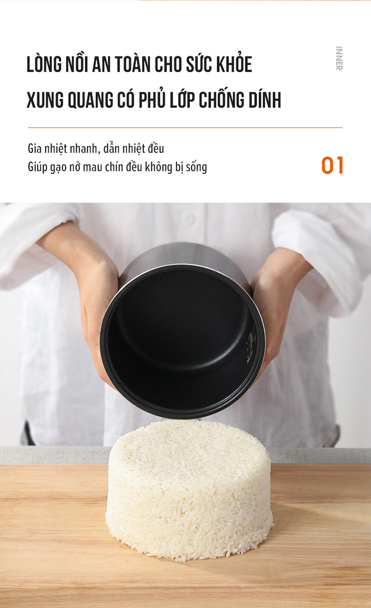 Lòng nồi chống dính bền tốt, nấu cơm an toàn, chống dính cháy, vệ sinh đơn giản sau khi dùng. Lòng nồi với chất liệu chống oxy hóa cao cấp giúp cơm được nấu nhanh nhưng vẫn đảm bảo an toàn sức khỏe cho cả gia đình.