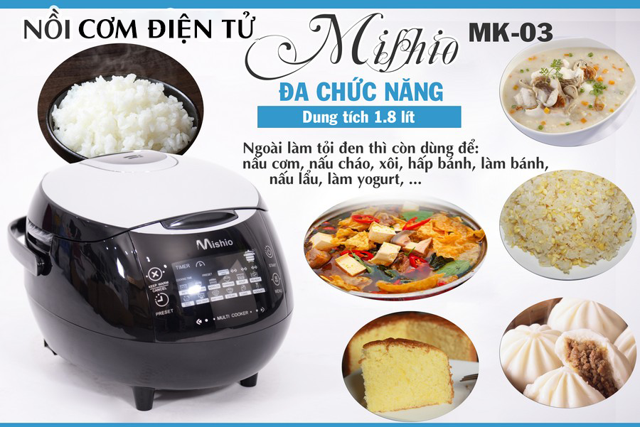 Ngoài là một nồi cơm điện đơn thuần cho ra các bữa cơm ngon, dẻo, nóng hổi, nồi cơm điện tử cảm ứng Mishio MK03 tích hợp khả năng nấu các loại thức ăn khác nhau: canh, chè, bánh, cháo, Một chức năng rất đặc biệt khác mà ít có chiếc nồi cơm điện khác làm được là khả năng làm tỏi đen với tỷ lệ thành công đến 90%  – một loại dược liệu quý cho sức khỏe hiện nay.