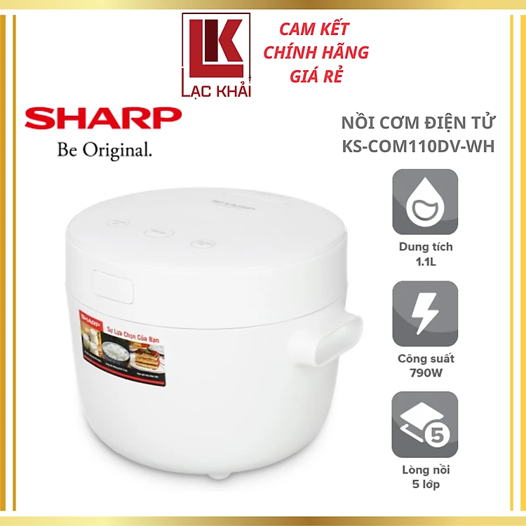 Nồi cơm điện tử Sharp 1.1 lít KS-COM110DV-WH, Công suất 790W - Hàng chính hãng