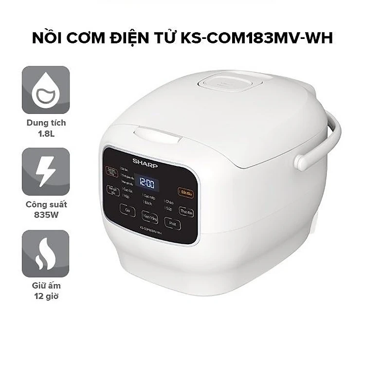 Nồi Cơm Điện Tử Sharp KS-COM183MV-WH 1.8L -Hàng Chính Hãng