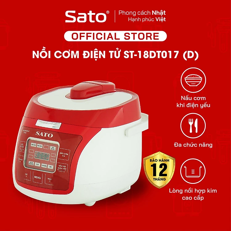 Nồi cơm điện tử SATO ST-18DT017 1.8L dùng cho 4 đến 6 người lớn, nồi cơm thông minh đa chức năng, nấu cơm, nấu cháo, hầm, làm bánh, nấu cơm khi điện yếu - Miễn phí vận chuyển toàn quốc - Hàng chính hãng
