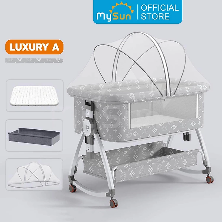 Nôi cũi cho em bé sơ sinh ghép chung giường ngủ gấp gọn Luxury MySun