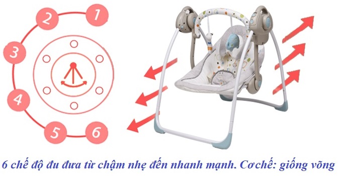 Cơ chế: Hoạt động đu đưa như võng. Dùng Pin hoặc điện trực tiếp (Pin không phải dòng Pin xạc, dùng hết bỏ đi)