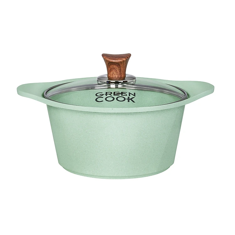 Nồi Đúc Ceramic Chống Dính Green-Cook GCS05-24IH Size 24cm Vân Đá Đáy Từ Nắp Kính Cường Lực Dùng Trên Mọi Loại Bếp-Hàng Chính Hãng