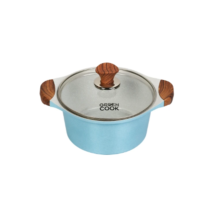 Nồi đúc men đá xanh Sapphire tay cầm chống bỏng 18-20-24cm Green Cook GCS09-24IH - Dùng cho mọi loại bếp - Gian hàng chính hãng greencook