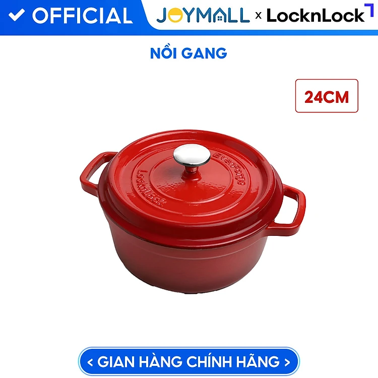 Nồi gang nguyên khối LocknLock Iron Casserole CIC2205RED, Hàng chính hãng, tráng men, dùng được bếp từ - JoyMall
