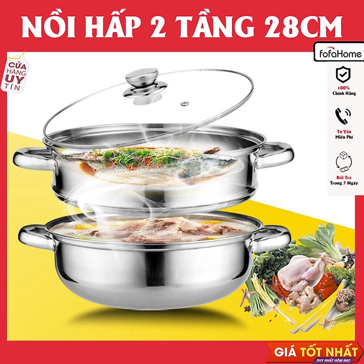 Nồi Hấp 2 Tầng 3 Tầng Kèm Xưởng Hấp Đa Năng 28cm, Nổi Lẩu Dẫn Nhiệt Tốt ( Dùng Được Cho Bếp Từ ) - Hàng nhập khẩu
