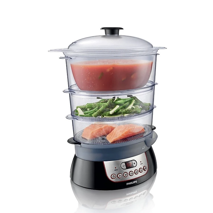 - Hấp được nhiều thực phẩm hơn nhờ 3 tầng hấp riêng biệt.