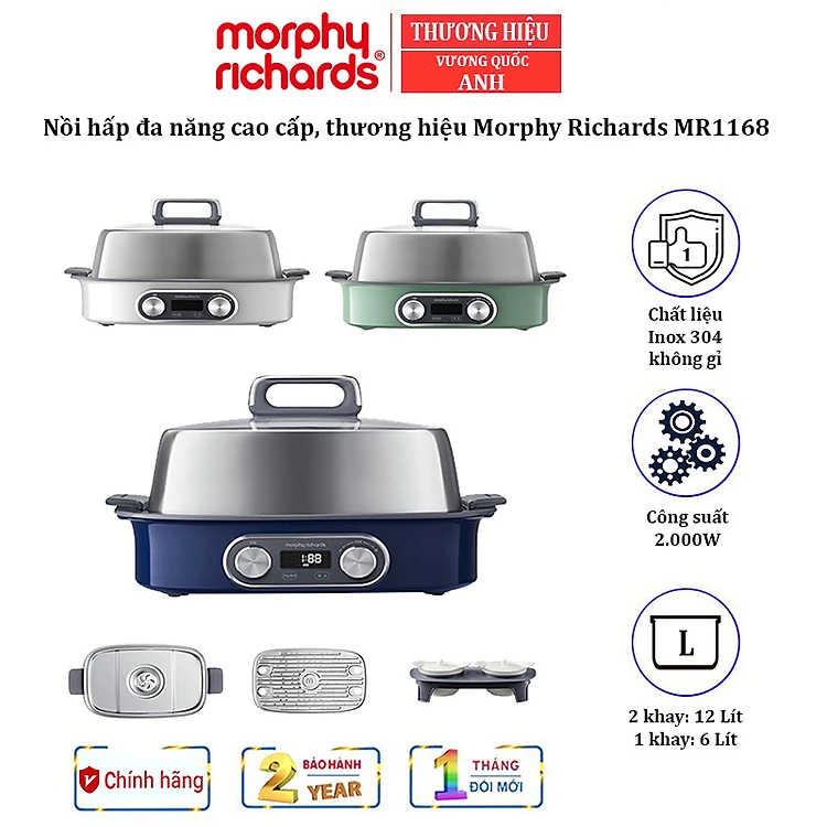 Nồi hấp đa năng Morphy Richards MR1168 Thương hiệu Anh Quốc, Công suất 2000W - HÀNG NHẬP KHẨU (BẢO HÀNH 24 THÁNG)