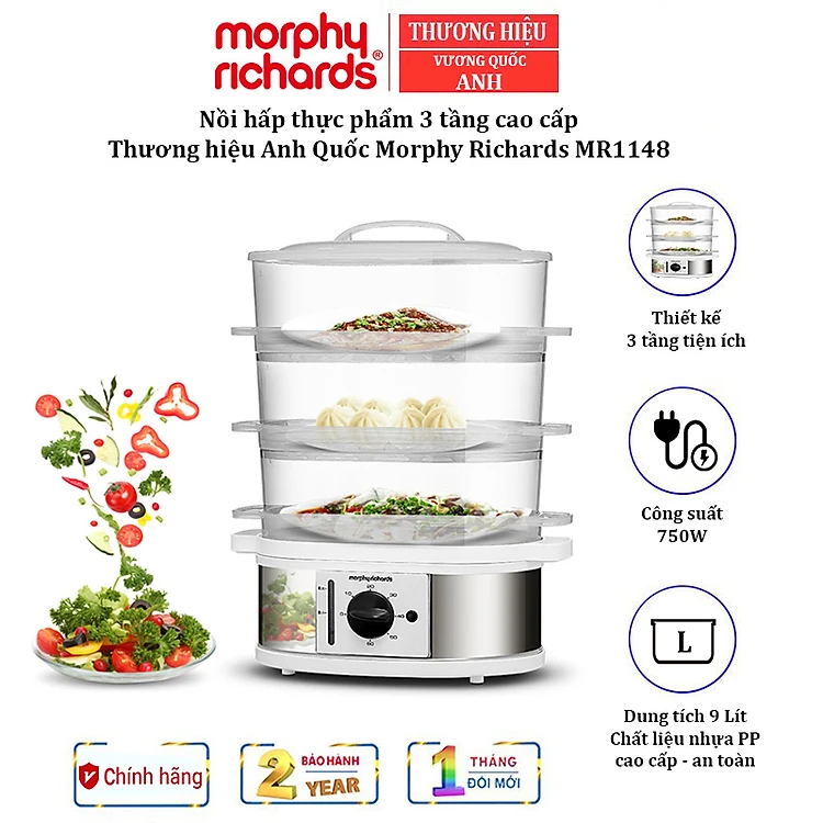 Nồi hấp thực phẩm 3 tầng Morphy Richards MR1148 công suất 750W - Hàng Nhập Khẩu