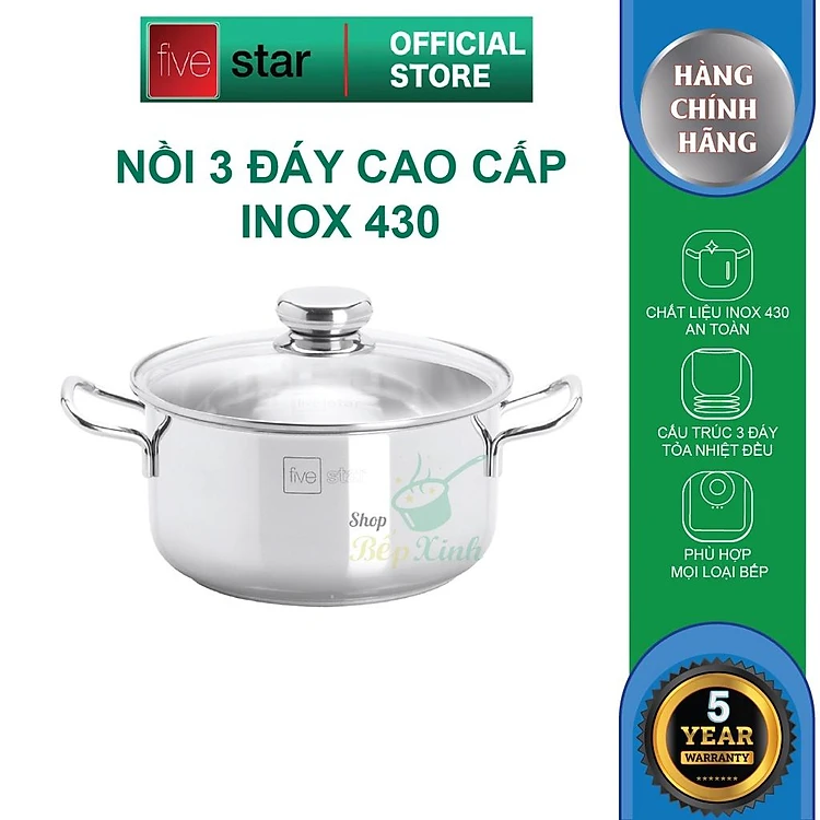 Nồi inox 3 đáy sandwich inox 430 cao cấp Standard bếp từ nắp kính (16cm /18cm / 20cm / 24cm)