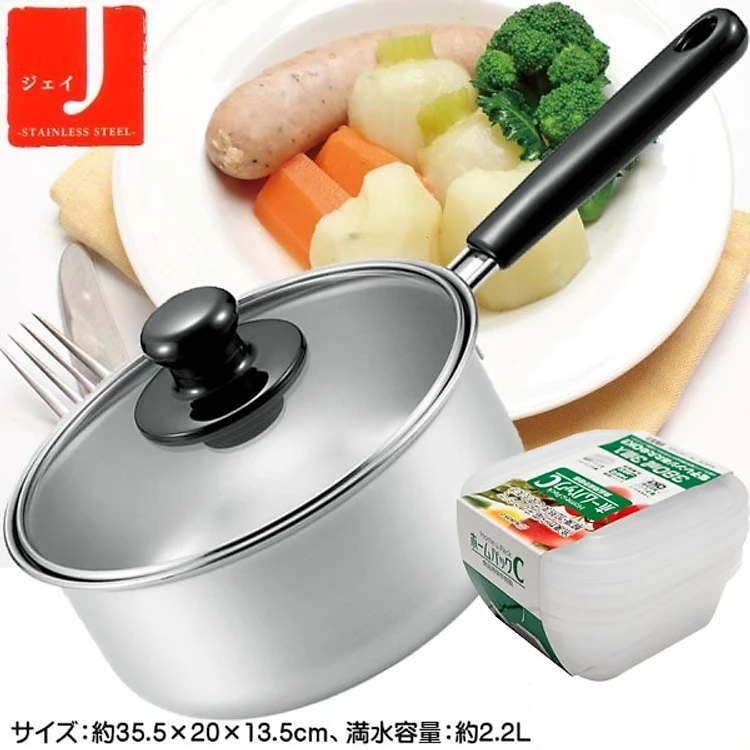 Nồi inox cao cấp Tsubame 18cm ( dùng được cho bếp từ ) tặng kèm set 3 hộp 380ml - nội địa Nhật Bản
