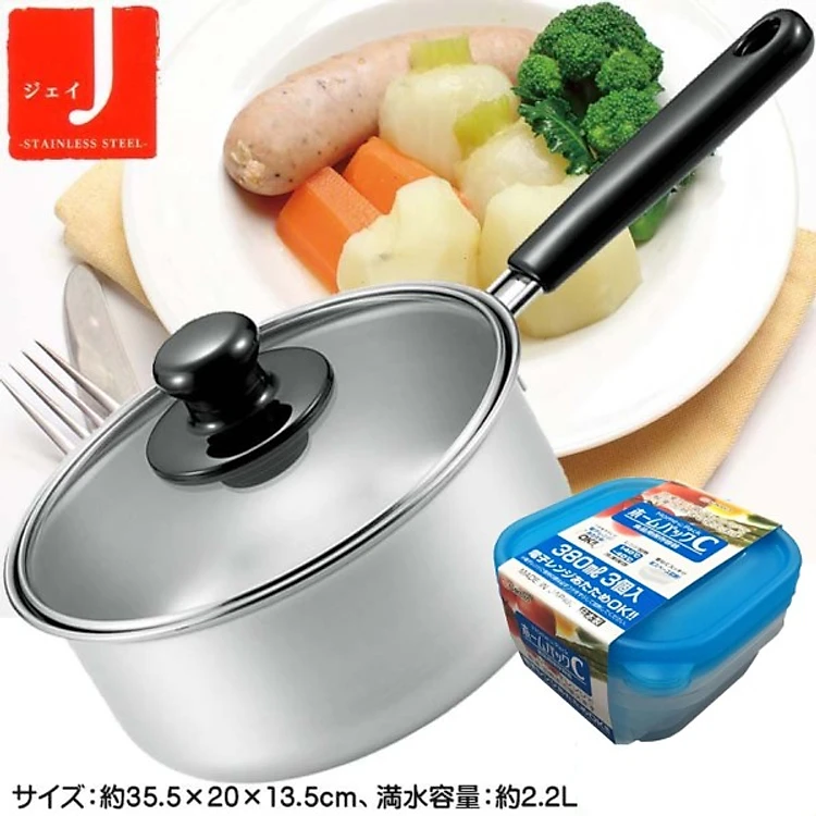 Nồi inox cao cấp Tsubame 18cm ( dùng được cho bếp từ ) tặng kèm set 3 hộp 380ml - nội địa Nhật Bản