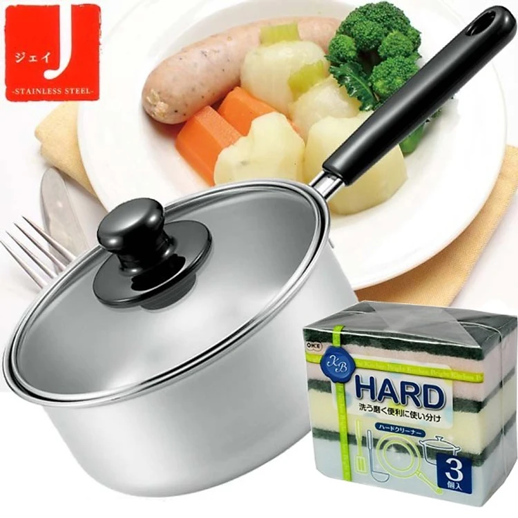 Nồi inox có tay cầm Tsubame 18cm, tặng kèm set 03 miếng mút rửa xoong nồi - nội địa Nhật Bản