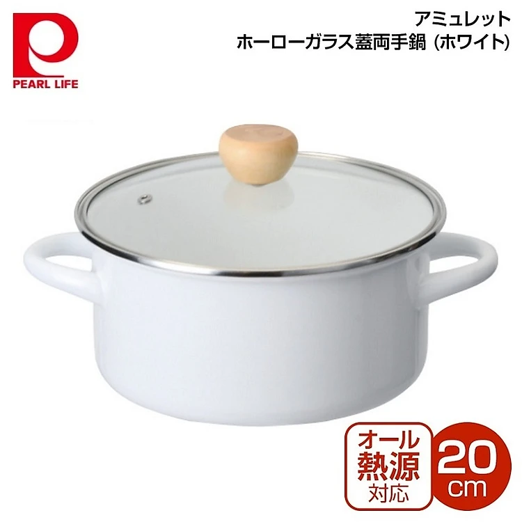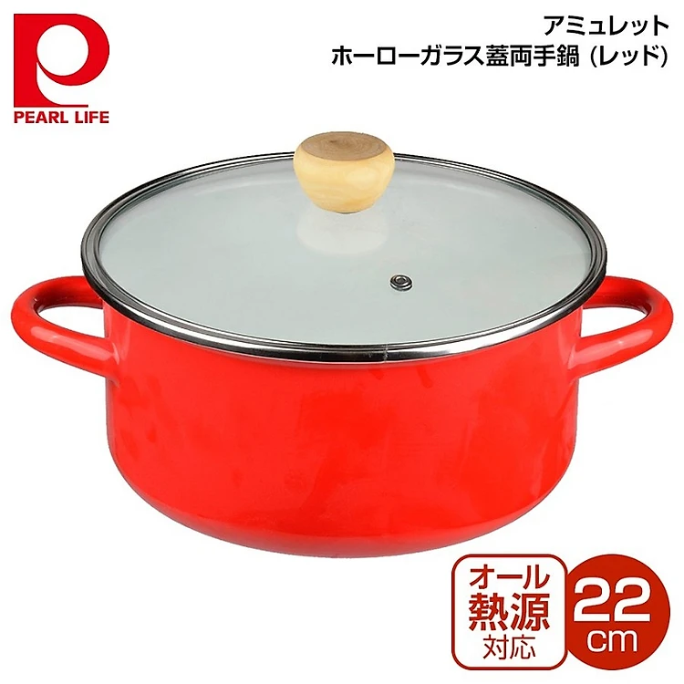 Nồi inox tráng men nắp kính dùng cho bếp từ Pearl Metal Amulet Ø22cm (Đỏ/Trắng) - Hàng nội địa Nhật Bản |#nhập khẩu chính hãng|