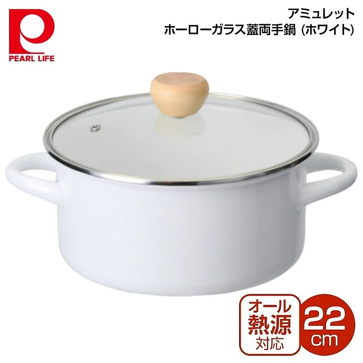 Nồi inox tráng men nắp kính dùng cho bếp từ Pearl Metal Amulet Ø22cm (Đỏ/Trắng) - Hàng nội địa Nhật Bản |#nhập khẩu chính hãng|