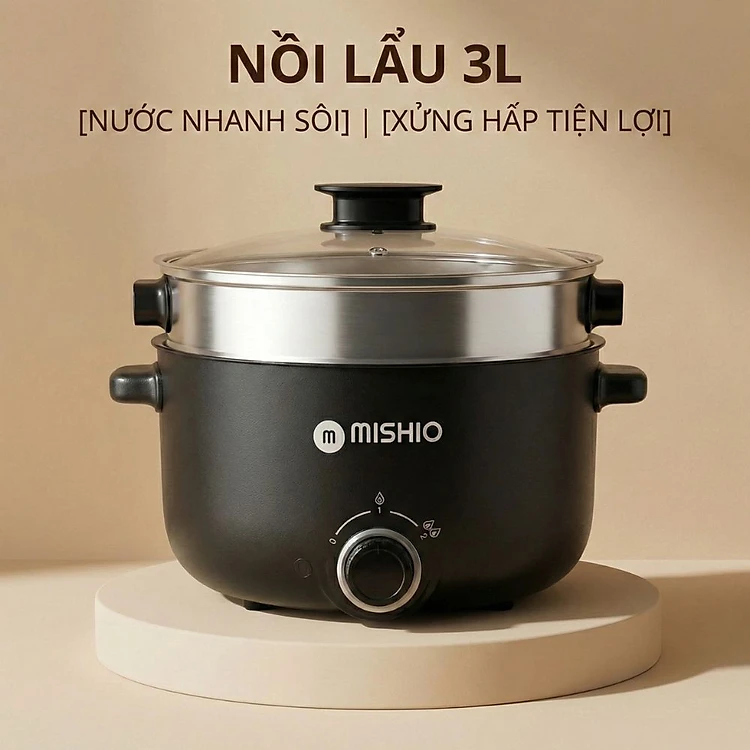 Nồi Lẩu Điện 4L Mishio MK328 có xửng hấp - Hàng chính hãng