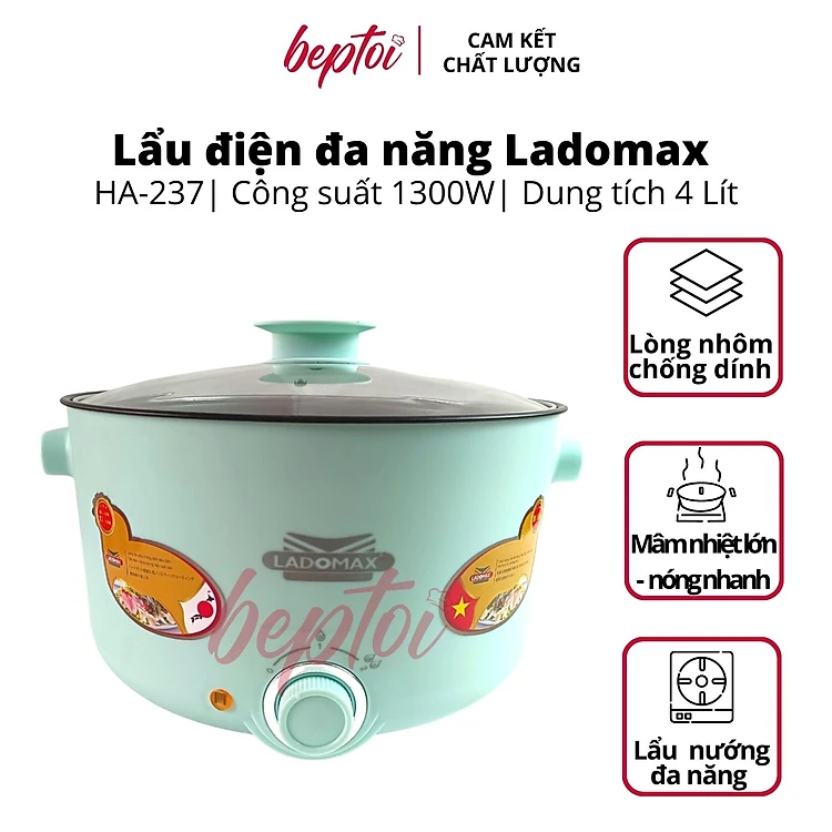 Nồi lẩu điện đa năng Ladomax, bếp lẩu điện mini dung tích 4 Lít công suất 1300W HA-237 - Hàng Chính Hãng