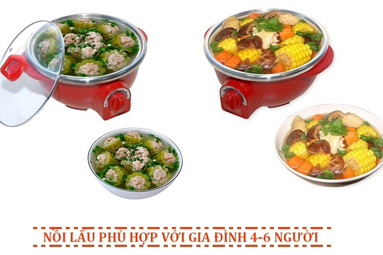 Lòng nồi rộng rãi với dung tích 3.5L, phù hợp để chế biến được nhiều thức ăn cùng lúc, phục vụ cho gia đình đông người hay chuẩn bị cho các bữa tiệc, mà không tốn thời gian chia nhiều lần nấu. Bạn có thể làm được các món lẩu, chiên và xào chỉ với một nồi lẩu điện đa năng mà không cần tốn chi phí mua các loại nồi khác nhau, đảm bảo tiện lợi tối ưu cho người sử dụng.