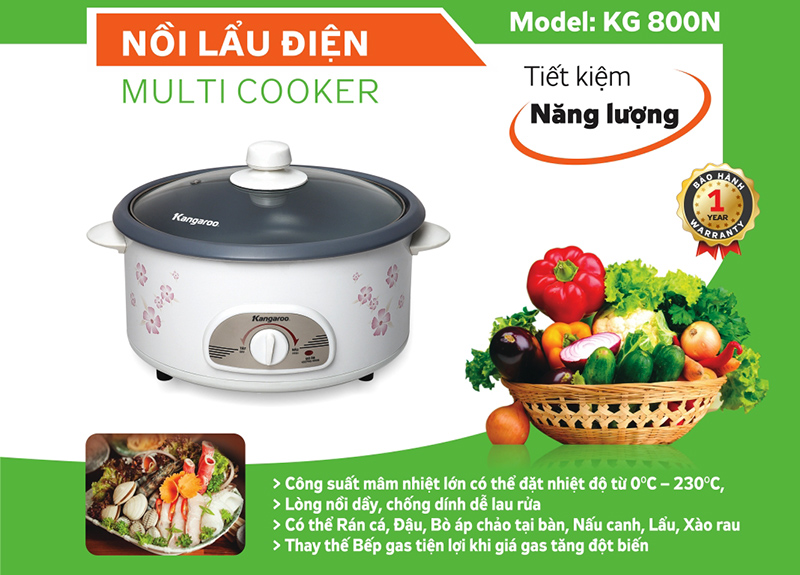 Nồi lẩu điện Kangaroo KG 800 có chức năng nấu lẩu, ngoài ra bạn còn có thể dùng để: rán cá, bò, đậu áp chảo tại bàn; nấu canh, vô cùng tiện lợi và nhanh chóng.