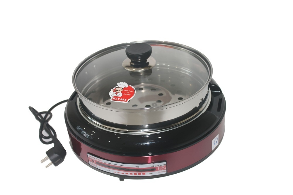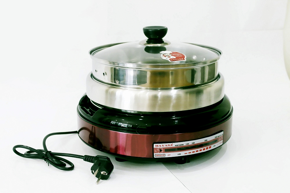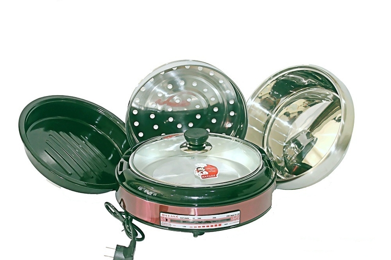 Tên sản phẩm: Nồi lẩu nướng hấp điện đa năng Hayasa với nhiều chức năng nấu,nướng hấp chiên xà