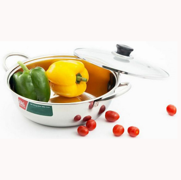 Nồi lẩu inox 1 đáy nắp kính - Hàng Chính Hãng